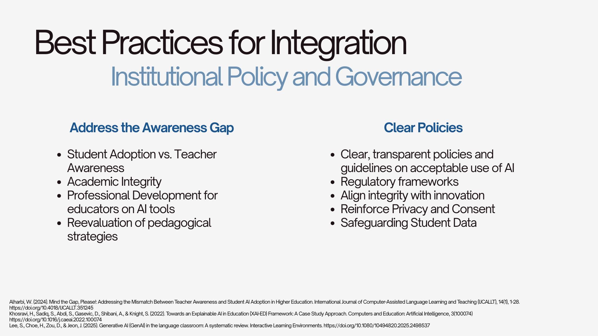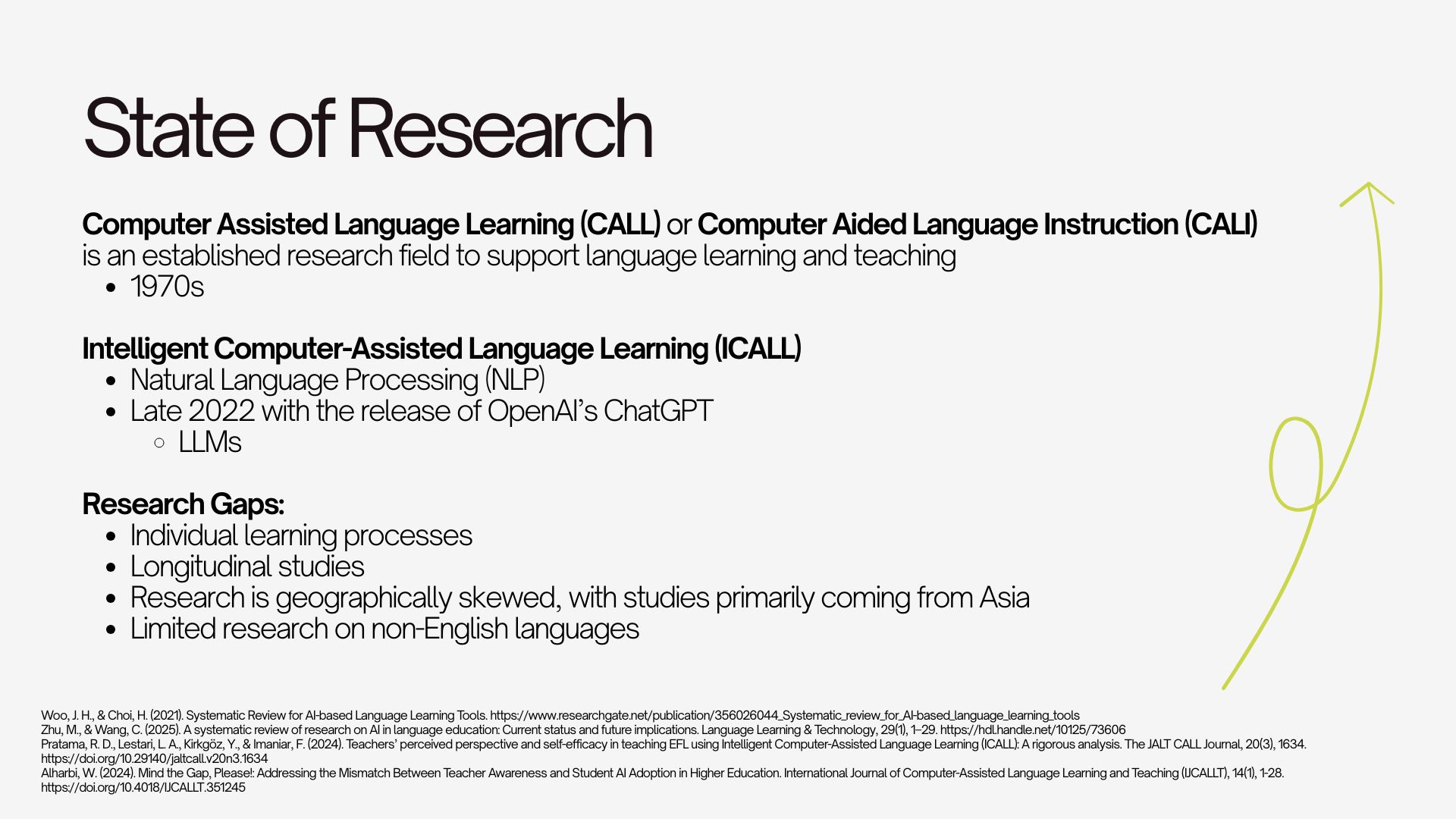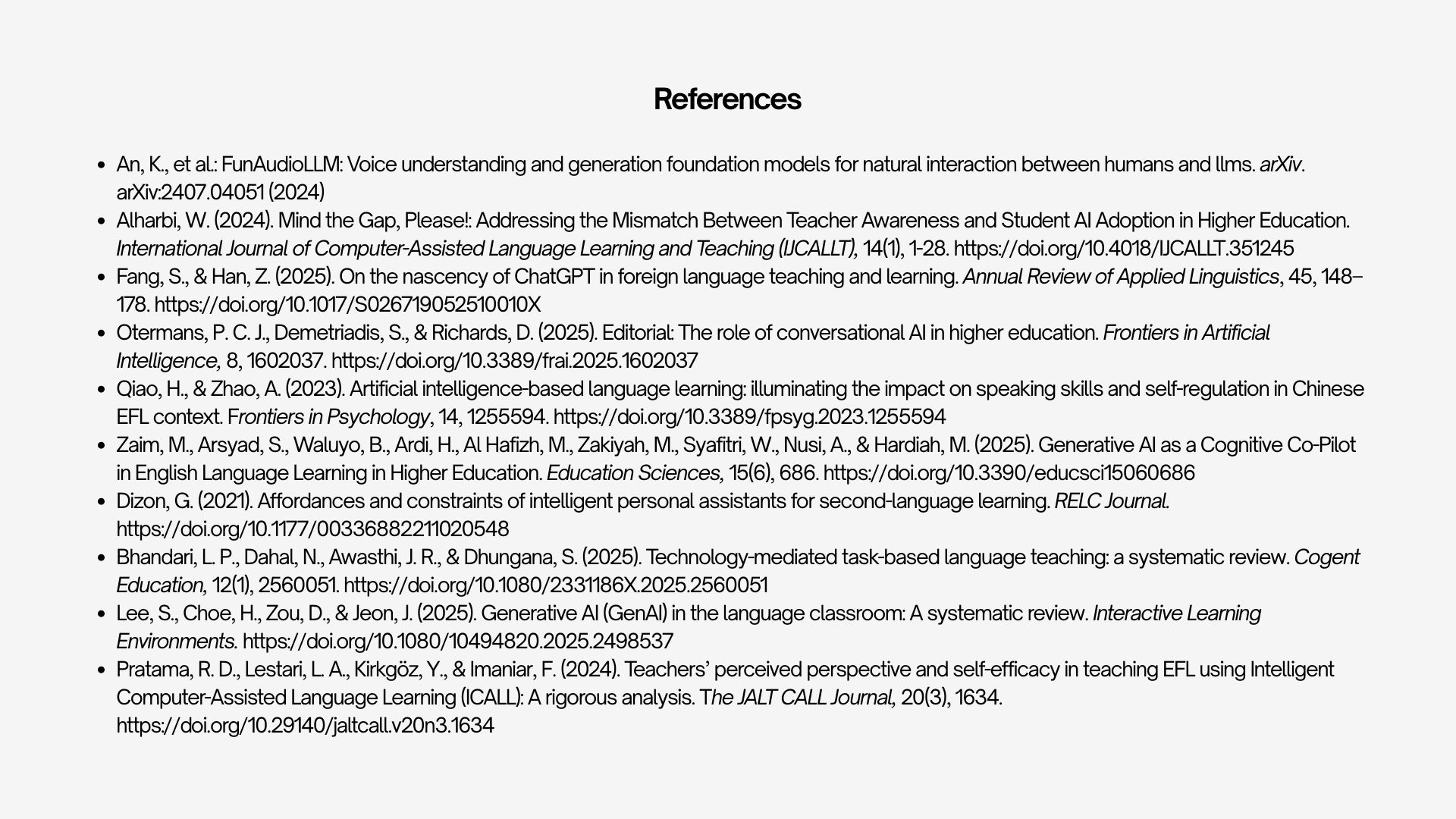 This presentation explores the use of GenAI in Language Learning course Higher Education. It covers the state of research regarding this topic, the roles that GenAI can take in the classroom, the challenges and ethical tensions, and the best practices for integration.